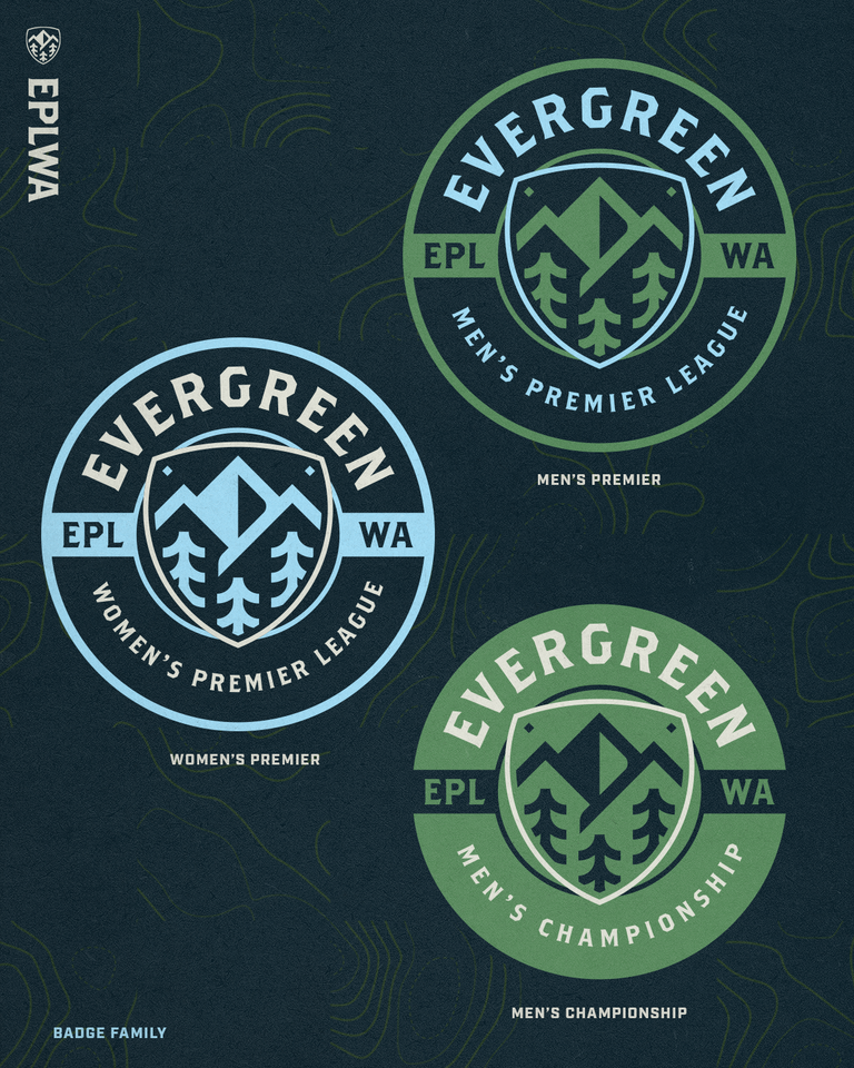 “The goal was to modernize the Evergreen Premier League brand without losing what makes it distinctly Pacific Northwest. We refined the original mark into a cleaner, more cohesive and contemporary badge system while keeping the core color story and the landscape elements that tie the league to its roots. The updated crest brings a stronger visual presence across competition, apparel, and digital platforms, while honoring the history that built it. It’s an identity designed to grow with the league.”
